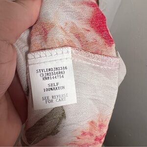 Great condition, new with tags. David & Dani. Show Your Radiance Kimono. White with pink floral pattern. Bell sleeves. Style DJ82316. Size large. 100% rayon. Pit to pit laying flat 25” shoulder to hem 38” Sleeve (pit to hem) 15”. All measurements are approximate and taken lying flat. Smoke free home. No trades, offers welcome.