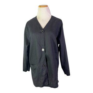 David Dart Size S Button-Front Black Linen Jacket V-Neck