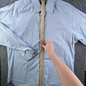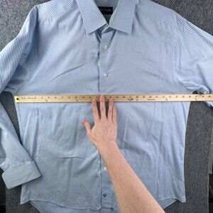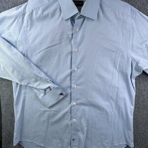 David Donahue Button Up Shirt Mens Size 17.5 36/37 Blue Striped Long Sleeve