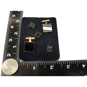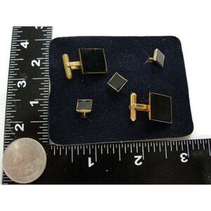 David Donahue Cufflinks Black Onyx Gold Tone Shirt Button Set Formal Tux Vintage