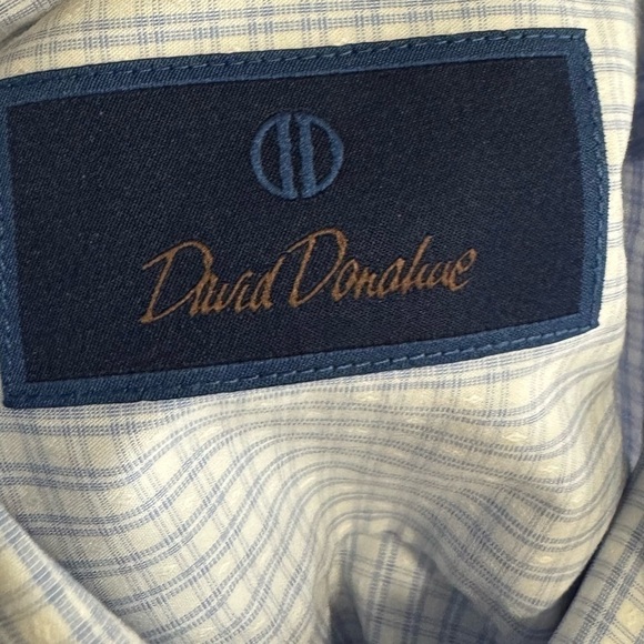 Elevate your formal attire with this David Donahue dress shirt, perfect for weddings, parties, christenings, and business events. The shirt features a blue and white check pattern, with a collared neckline and button closure. It is made of 100% cotton, ensuring comfort and easy care, and is suitable for all seasons.
