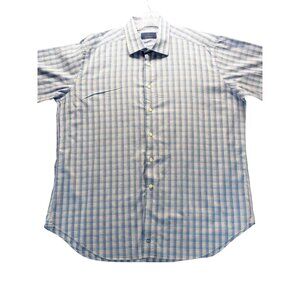 David Donahue Long Sleeve Blue/Pink Check Button Up Mens Dress Shirt 18 34/35