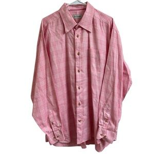 David Donahue Men Size XL Pink Tartan Plaid 100% Cotton Long Sleeve Dress Shirt
