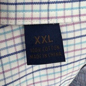 David Donahue Mens Long Sleeve Plaid Button-Up Shirt 100% Cotton
