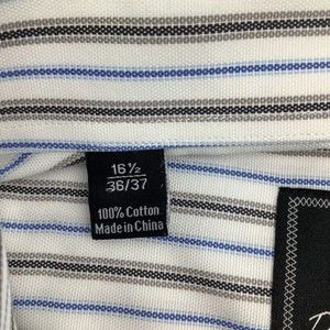 David Donahue Mens Trim Fit Long Sleeve Button Up Shirt Striped Size 16.5 36/37