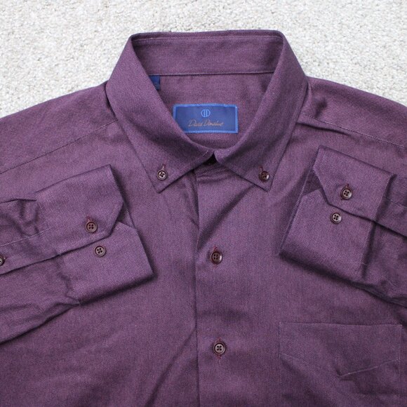 David Donahue Shirt Mens Large Purple 100% Cotton Long Sleeve Button Down