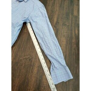 David Donahue Shirt Mens Sz 15 32/33 Long Sleeve Dress Trim Fit Plaid Blue Casua