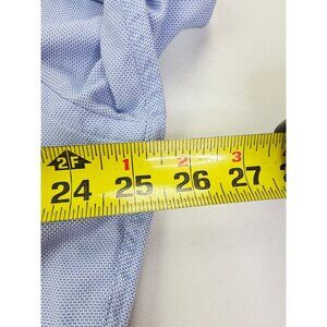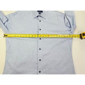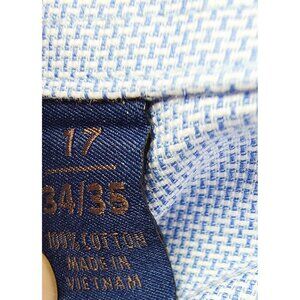 David Donahue Size 17 34-35 Trim Mens Blue Spread Collar Long Sleeve Logo Shirt
