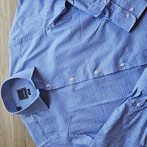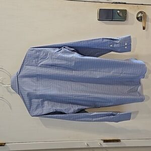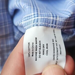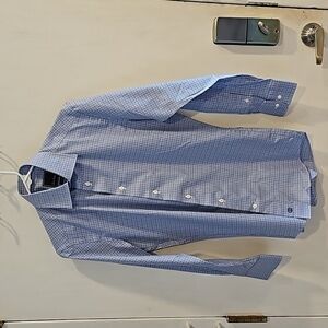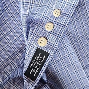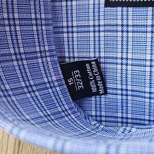 David Donohue Blue White Micro Check Plaid Button Down Dress Shirt 15/32-33 NWOT