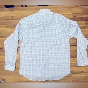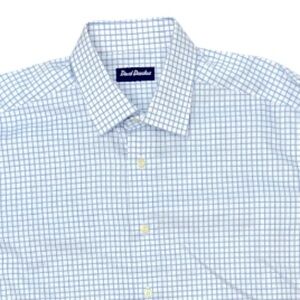 David Donohue 100% Cotton French Cuff Long Sleeve Button Down White Blue Check 17.5 36/37