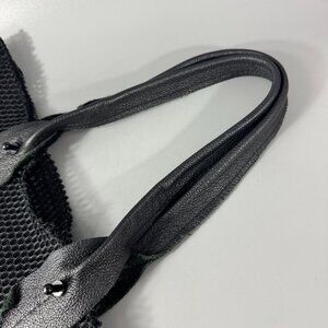David Galan Black Mesh Material with Black Leather Straps Large Tote Bag