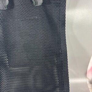 Nylon fishnet with double black leahter top handles, drop approx. 8.75''.