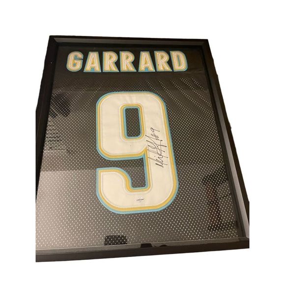 This jersey was purchased. It was signed by David Garrard of the Jacksonville jaguars. It does come with a certification certificate authenticity sticker. On the front you can see the sticker for the authentication. The certification authentication card has been misplaced. The shadowbox will come with the jersey shadowbox is 16 x 20. Please take a look at the photos if you have any questions please feel free to reach out