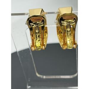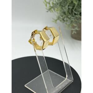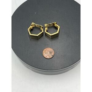 David Grau Signed Vintage Classic Hexagonal Gold Plated Clip on Earrings