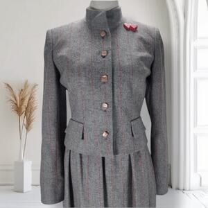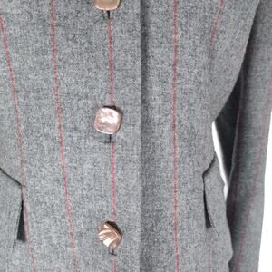 David Hayes Gray Pinstripe Wool Skirt Suit S 80s Does 40s Jacket Set Lucite Btns