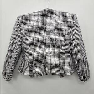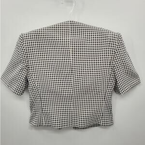 Step into 1960s elegance with this striking four-piece ensemble in classic black and white houndstooth. Featuring a pleated maxi skirt, coordinated top, tailored jacket, and matching scarf, this vintage set exudes polished sophistication and mod-inspired flair. Perfect for collectors or those drawn to timeless patterns and structured silhouettes, it’s ideal for making a chic, retro statement.