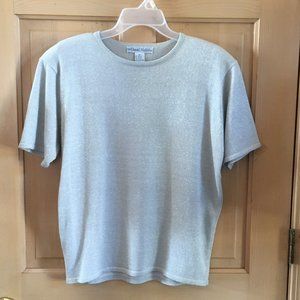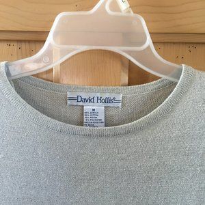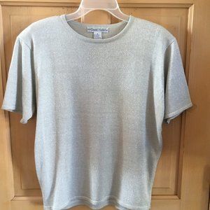 Short Sleeve sweater with silver metallic thread running thru it from David Hollis. Size M