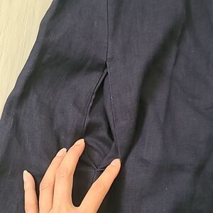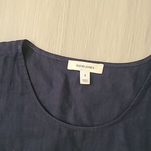 David Jones 100% Linen Navy Sleeveless Dress Coastal Grandma Breathable Summer