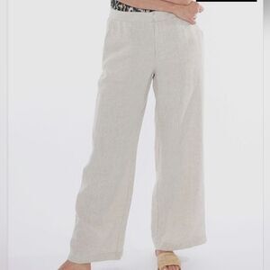 David Jones 100% Linen Neutral Wide Leg Beachy Pants Size 10 Australia Quiet Lux