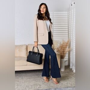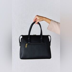 This bag exudes sophistication with its sleek, supple faux leather exterior that mimics the luxurious look and feel of genuine leather. Its medium size strikes the perfect balance between practicality and style, offering ample room for your essentials without compromising on sophistication. The thoughtfully designed interior compartments and pockets ensure organization while the sturdy straps provide comfort and convenience for everyday use.