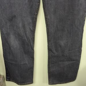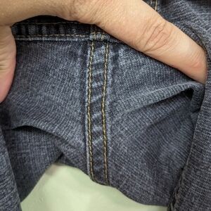 These jeans are in gently used condition. They are lighter weight stretchy denim. They have a cross hatch look to the denim. They were made in the USA. Missing size tag, but sizing is based on similar jeans. Please see photos for details.