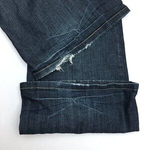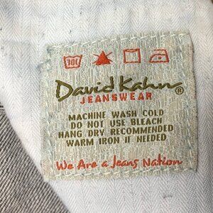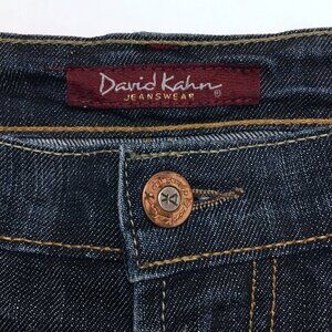Description: David Kahn Flare Leg Jeans in good preowned condition; light distressing, hems have wear/fraying
