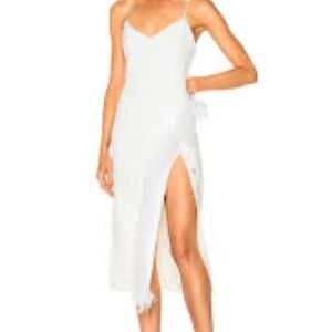 Authentic NEW DAVID KOMA White Crepe Side Split Feather Trim Midi Dress