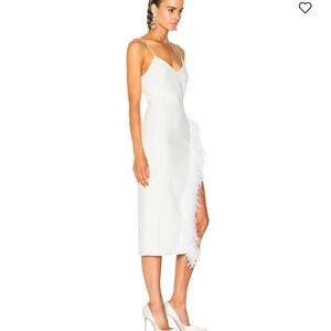 DAVID KOMA FEATHER HEM IVORY MIDI DRESS NEW