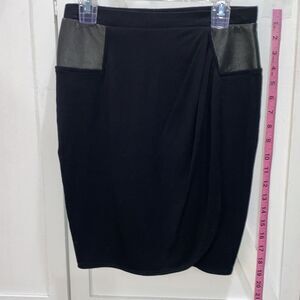 David Lerner Black Faux Leather Trim Skirt Size Small