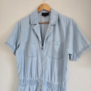 David Lerner Carson Jumpsuit Chambray Denim Size L Short Sleeve Zip Up