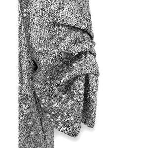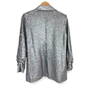 David Lerner Hailey Oversized Blazer Jacket Ruched Sleeves Silver Sequin Size S