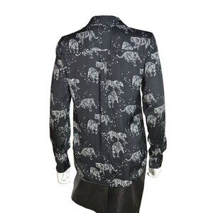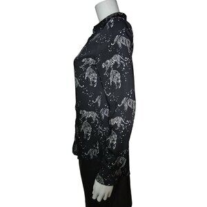 David Lerner New York Women's Tiger Print Button-Down Shirt Black/White- LT3140