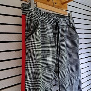 David Lerner X Evereve Black White Checkered Houndstooth Joggers with Red Stripe