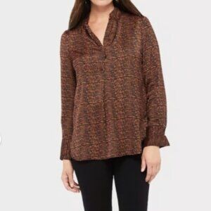 David Lerner x Evereve Mandarin Collar Bombay Stripes Blouse