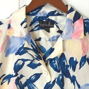 David Matthew 90's Vintage Abstract Floral Short Sleeve Button Down Top