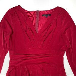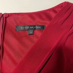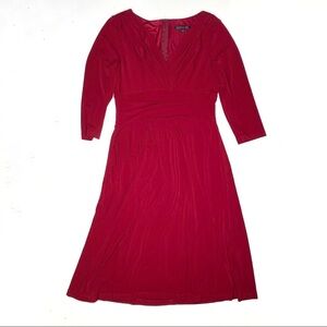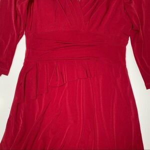 David Meister 3/4 Sleeve V Neck Cocktail Midi Dress Red 8 Christmas holiday