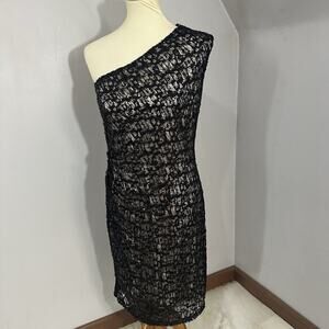 David Meister Black Lace One Shoulder Sequin Cocktail Dress Evening Formal Sz 12