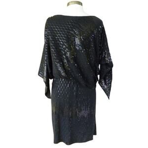 David Meister Black Sequin Draped Slit Sleeve Cocktail Dress Blouson
