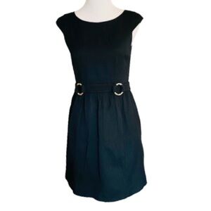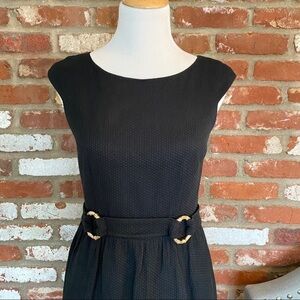 David Meister Black Textured Sleeveless Sheath Dress size 6 Gold Loop Detail