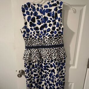 David Meister Blue and Black Sheath Midi Animal Print Dress Size 8