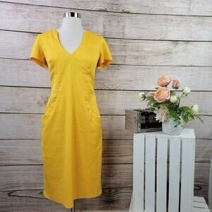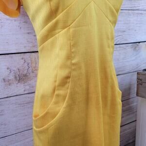 David Meister Bright Yellow Short Sleeve Sheath Dress 8