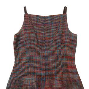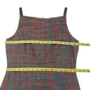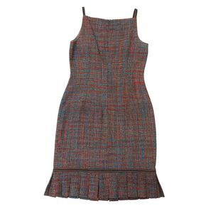 David Meister Dress Womens 8 Brown Sheath 100% Silk Sleeveless Pleated Tweed