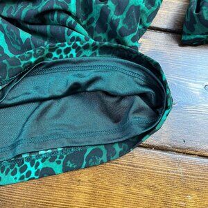 David Meister Dress Women's Sz 6 Green Black Animal Print Career Sheath Ruched