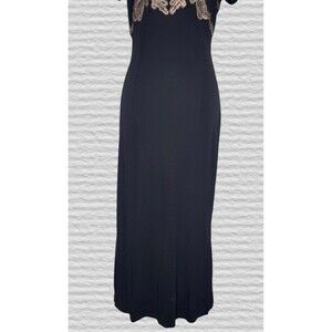 David Meister Embroidered Beaded Luxe Gown Womens 8 Black Gold Maxi Elegant Gala