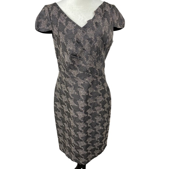 David Meister Houndstooth Dress Sheath Cap Sleeve Career Party Size 10