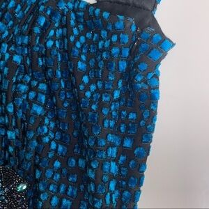 David Meister Metallic blue crushed Velvet Cocktail Dress fitted women’s Small