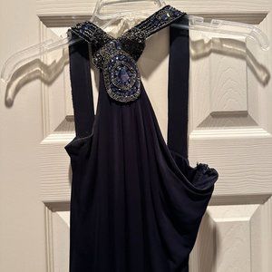 David Meister ~ Navy Jeweled Strappy One Shoulder Jersey Formal Gown Size 2