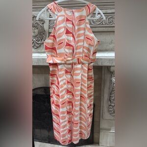 David Meister Retro 60’s 70’s Geomtric Print Belted Sleeveless Dress Size 8