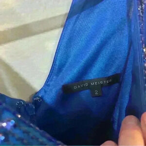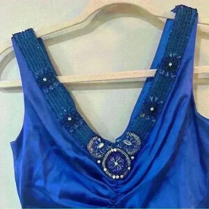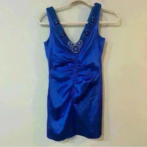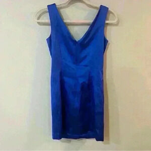 David Meister Royal Blue Satin Sequin Jewel Mini V-Neck Sleeveless Dress Size 2