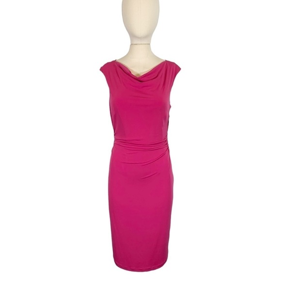David Meister Ruched Cowl Neck Sleeveless Sheath Dress Pink Size Small NWT